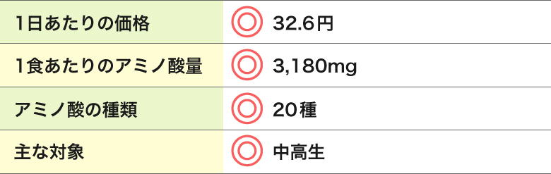 また、近年はアミノ酸が運動のパフォーマンスをアップしてくれる、とアスリートの間では常識になっているので「成長期をあきらめたくない」「少しでも競技成績をアップしたい」そんな結果にこだわる中高生アスリートにはぴったりな商品ではないでしょうか。